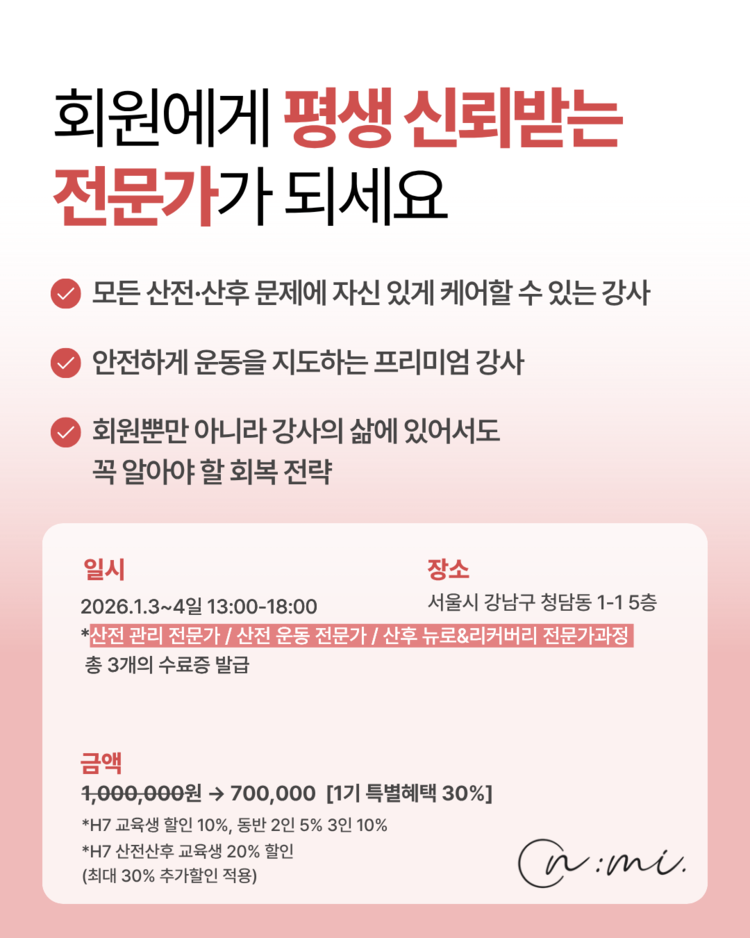 📢 산전 관리 전문가 / 산전 운동 전문가 / 산후 뉴로&리커버리 전문가과정 으로 총 3개의 수료증이 발급됩니다