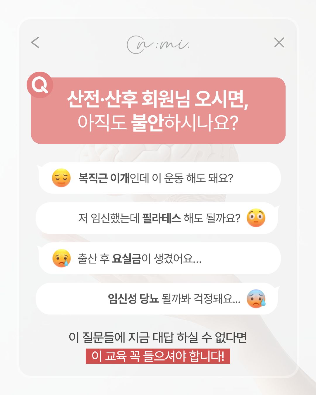 “산전·산후 회원 앞에서 아직도 불안하시나요?”