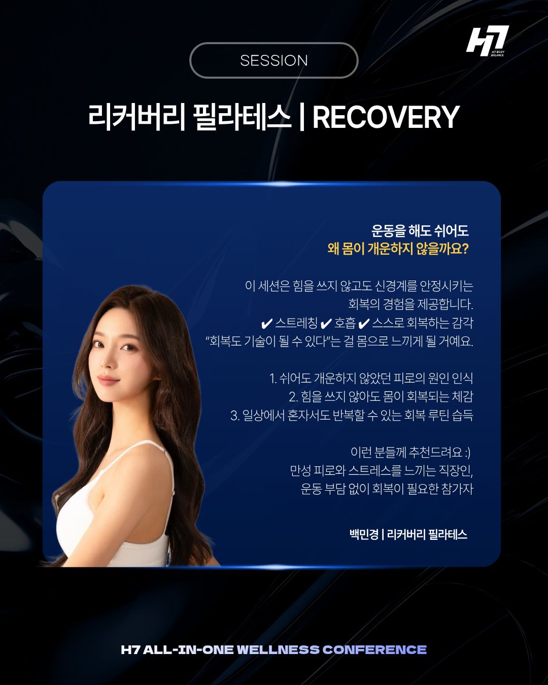 • 12:30–13:00 | 리커버리 필라테스 (백민경 강사)