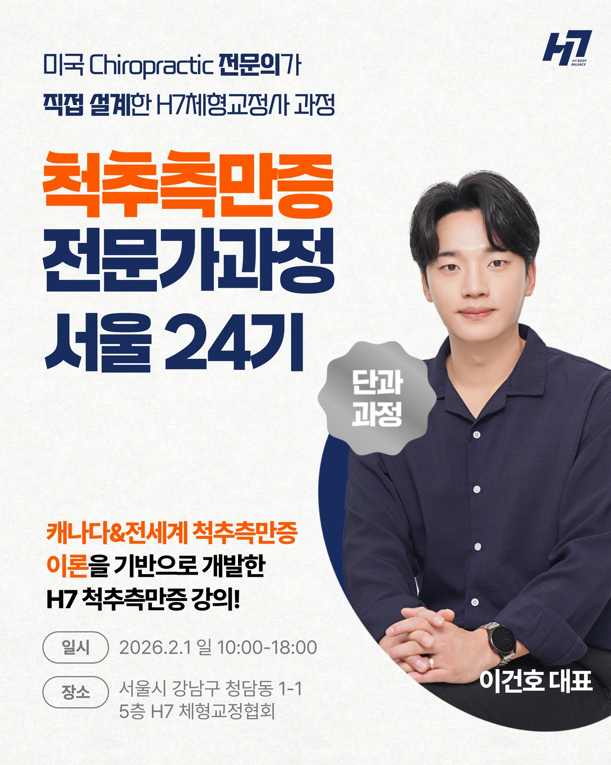 H7 체형교정협회는 미국 카이로프랙틱 의사와 통합 의학 박사 Ph.D. 강사가 직접 교육을 진행하는 교육 기관입니다.
